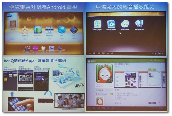 ▲在 BenQ 產品代表 Roger 和電腦王阿達兩位講師的簡報中,都有提到 BenQ 智慧電視棒 JD-130 具備強悍的影音撥放能力,一般常見的 1080P 影片或是 PPS 都能輕鬆觀賞,另外 BenQ 智慧電視棒 JD-130 也預先安裝了「BenQ 隨你通」APP 內含不少免費頻道可供觀賞,但我覺得最方便的功能是直接將手機或平板中的影片、相片無線傳輸給 BenQ 智慧電視棒撥放,隨拍隨分享,用不著接一堆有的沒的線材搞到氣氛都冷掉了。以下是幾部當天我自己試用還有講師阿達示範的影片要和各位分享。