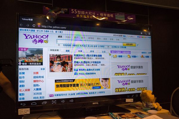 ▲用 BenQ 智慧電視棒 JD-130 內建的網路瀏覽器上網,看個新聞、查個氣象、逛個網拍都很實用。搭配鍵盤、滑鼠操作起來感覺和一般電腦沒甚麼不同,沒有甚麼不太好習慣的地方,除了螢幕畫面接上電視變超大之外,哈哈XD