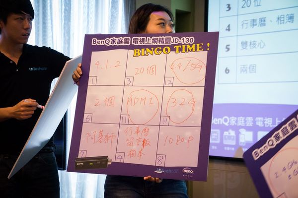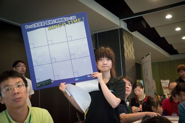 ▲在體驗活動中 BenQ 也不時安排了一些趣味競賽任務,上圖中本組可愛的工作人員手上舉著的就是接著要玩的遊戲「賓果盤」!