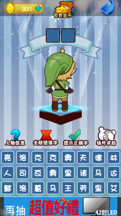 這遊戲是由《瘋狂猜歌名》的公司所製作推出的,但這次不是要考耳力,而是考印象,這遊戲所羅織的背影包含了動漫畫、遊戲、電影人物以及國際知名球星或名人等,造型Q版可愛,值得一猜。 林克 索隆 請點選觀看完整答案,轉自MYFUN網站 2 個人說讚 收藏 快速回應 引言回應