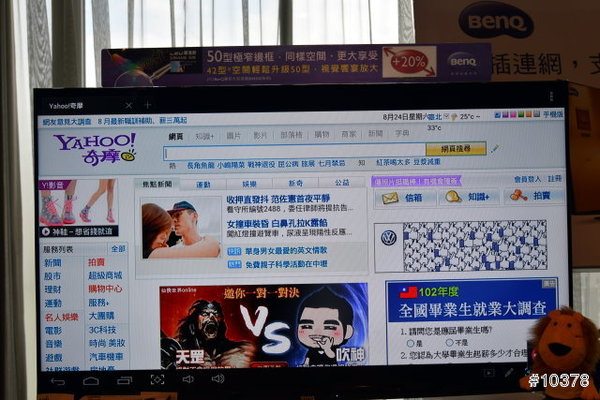 原來是 BenQ 小天使用筆記型電腦來連結電視,而網友用 BenQ 電視上網精靈來連結電視,看看哪一方連上網路看 YouTube 比較快。不用想當 BenQ 小天使還在找線及電視輸入端子時網友已經以 BenQ 電視上網精靈完成了。