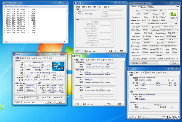 金士頓終保記憶體就….沒啥好介紹的囉(其實是小弟不知怎麼測 @@”),而SSD是我之前玩過的M4也懶得測了,顯卡則是沒玩過760,就來測一下,沒想到這張EVGA GTX 760還不錯,查了一下是8990元那張,一問之外才知是因為五年保、效能比較好選這張,因為和8390元的那張,店員算她的價格其實差沒多少,果然正妹去買就是不一樣……