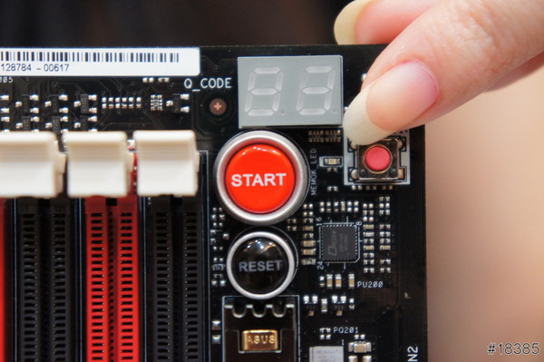 板子上有開機和重置按鈕,還有Debug LED設計,妹手指檔住的是MemOK!按鈕