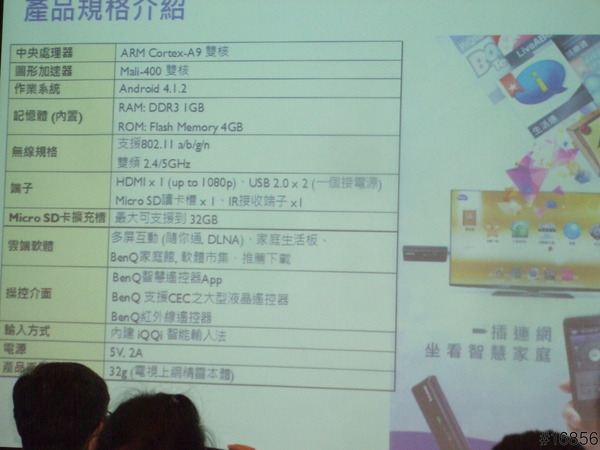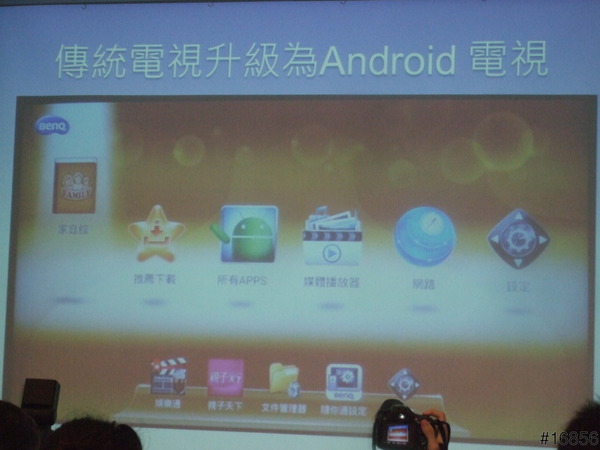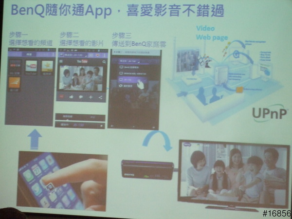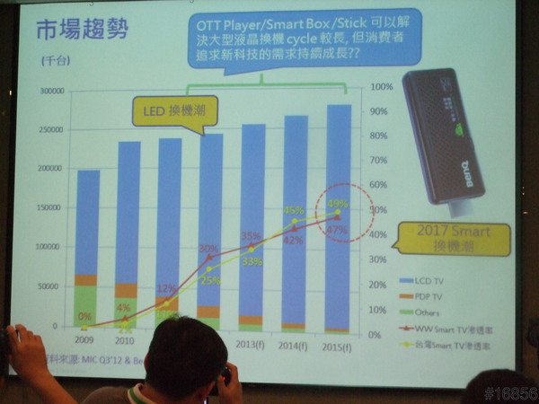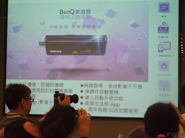 為什麼BenQ要出這個"BenQ家庭雲"勒,這是經過市場調查的結果才決定研發的,因為每5年是一個全世界的換機潮,2012是LED的換機潮,那現在的Smart TV換機潮預估在2017,所以BenQ想做一個裝置讓LED電視傭有Smart TV的能力,那個東西也是今天體驗的"BenQ家庭雲",
