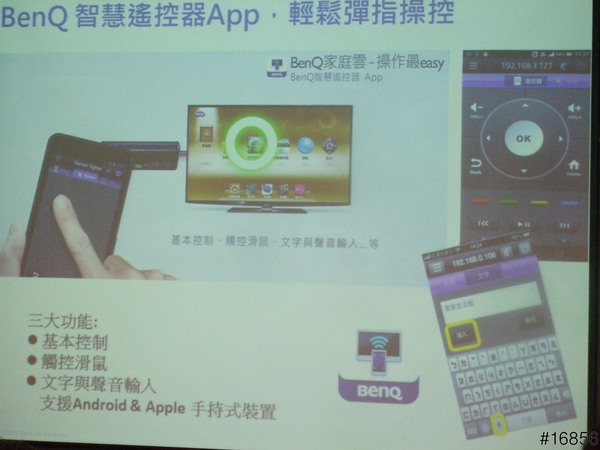 如果使用者有智慧型手機的話,可以裝上BenQ家庭雲的APP來操作,