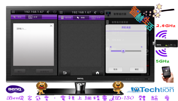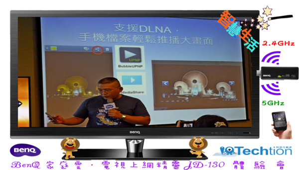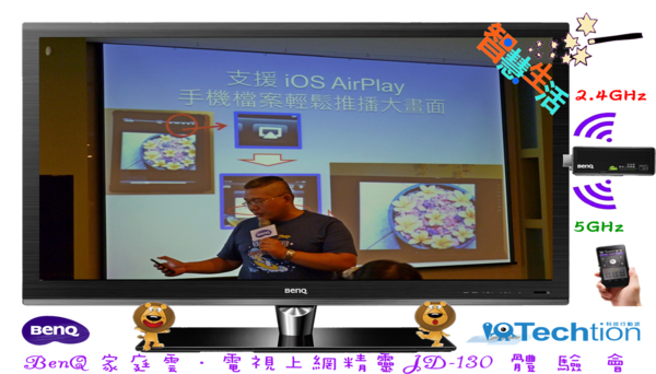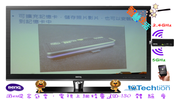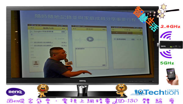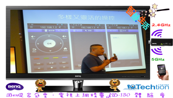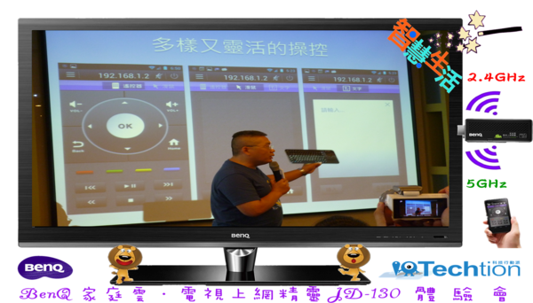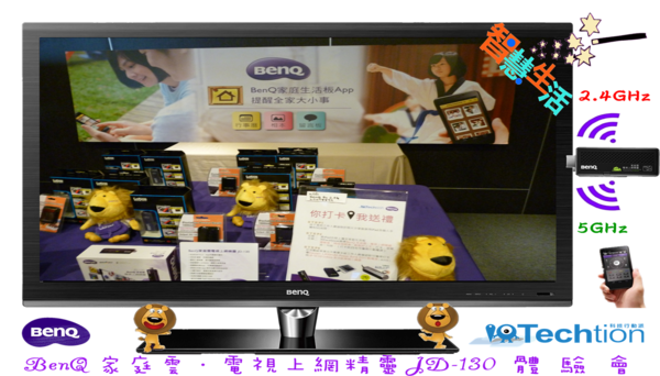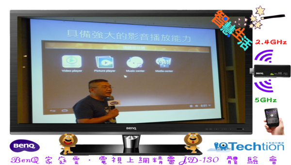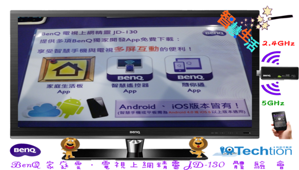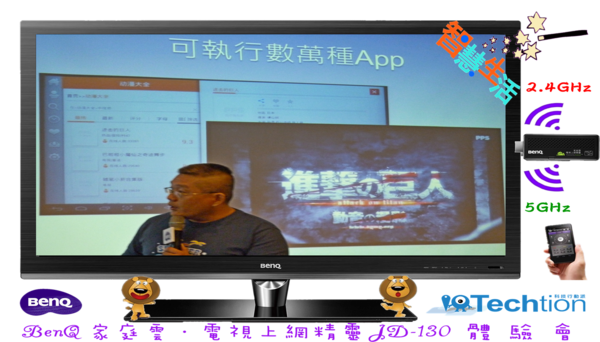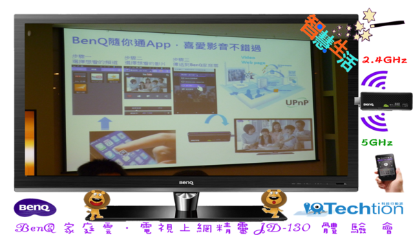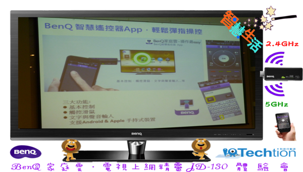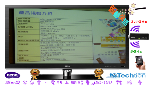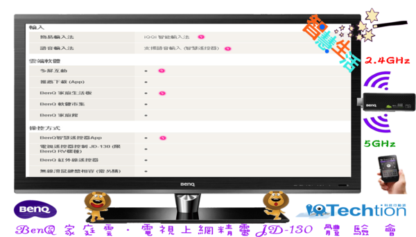 ▼ 會場上BneQ家庭雲電視上網精靈JD-130所強調的特點,兩款App特點還蠻特殊的。