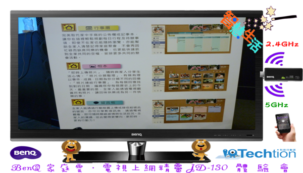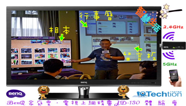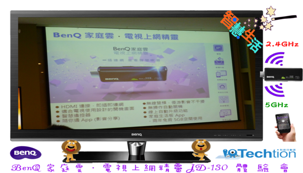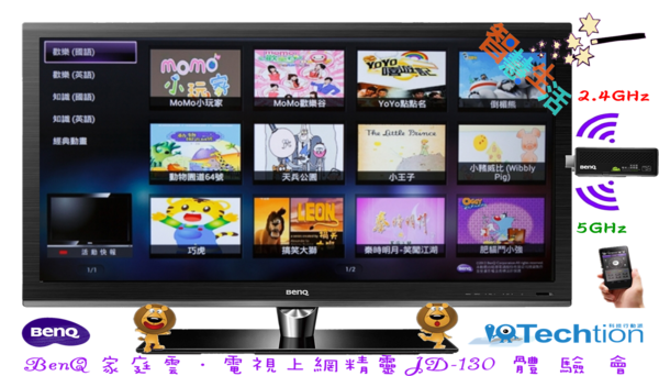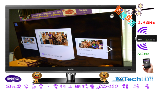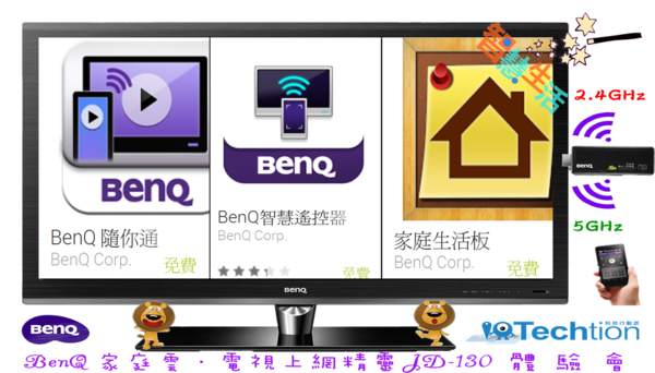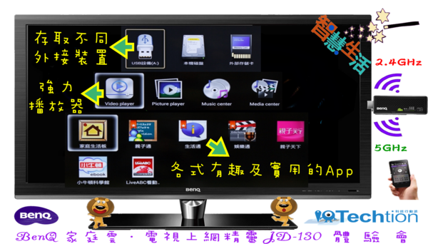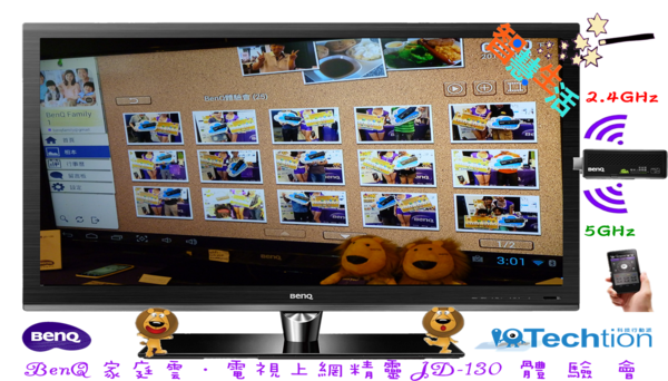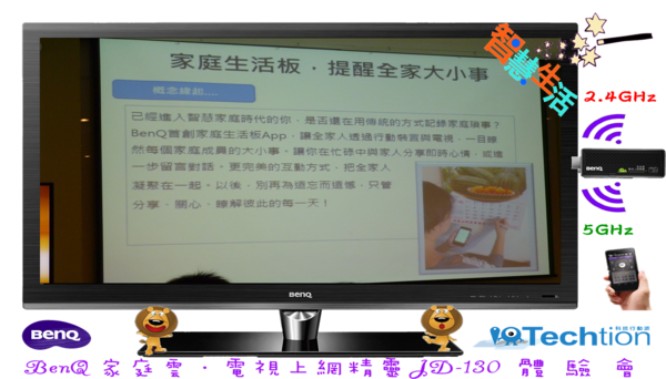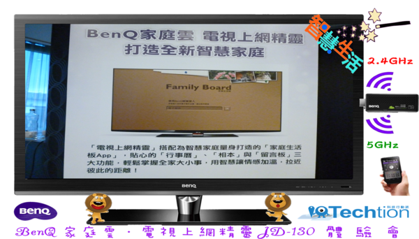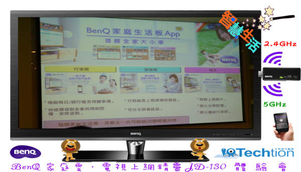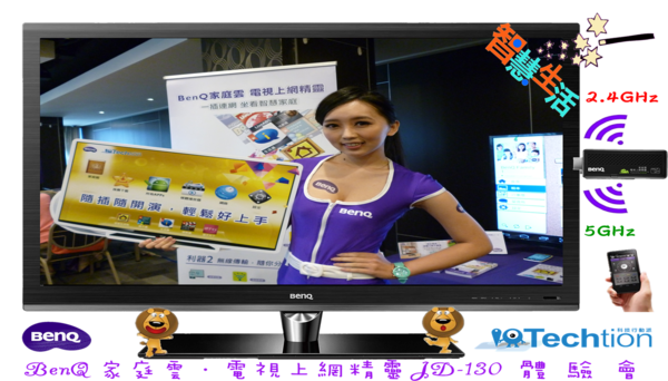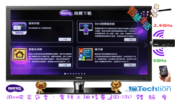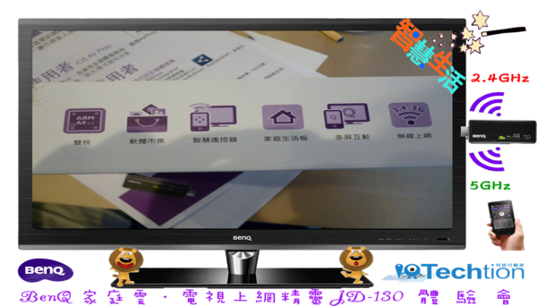 BenQ代表台灣家電的特有品牌,這次推出的家庭雲電視上網精靈JD-130。將傳統電視結合最新技術和創意,交織出媲美Sony、Panasonic等國際大廠Smart TV,精緻輕巧的造型、雙核加持的規格、多元操控的介面,都讓人讚不絕口;家庭雲電視上網精靈JD-130精彩豐富的App,滿足了廣大用戶對Smart TV的渴望,其中家庭生活板更是增進了家人間的情感,帶給家人間無窮的生活樂趣。