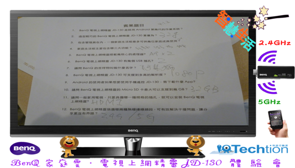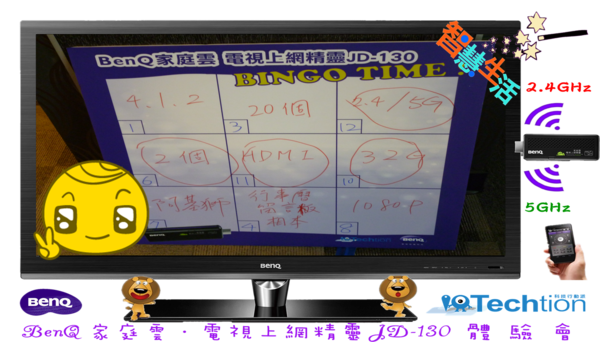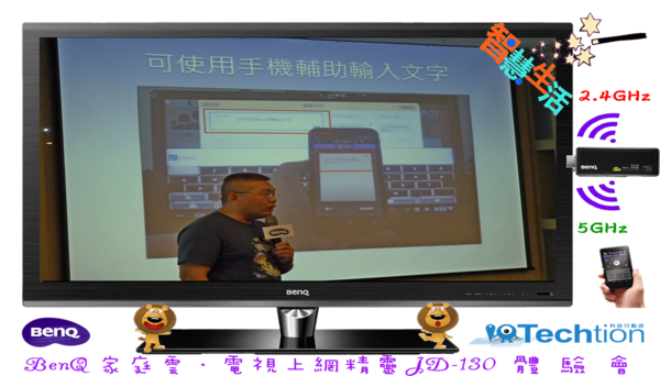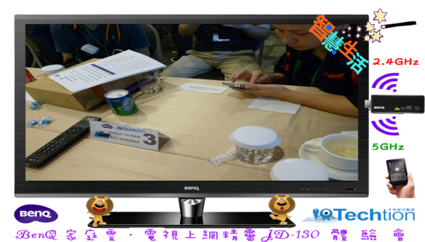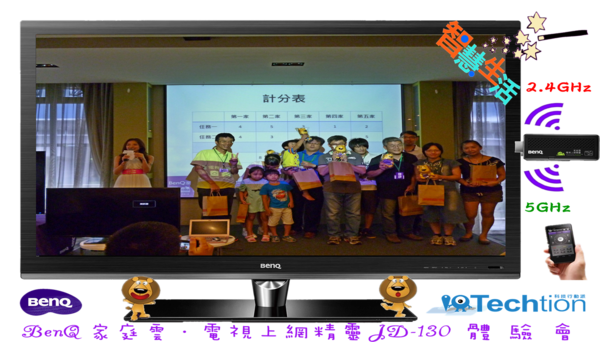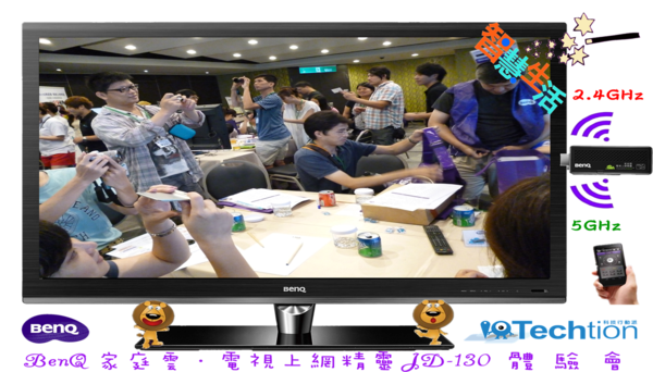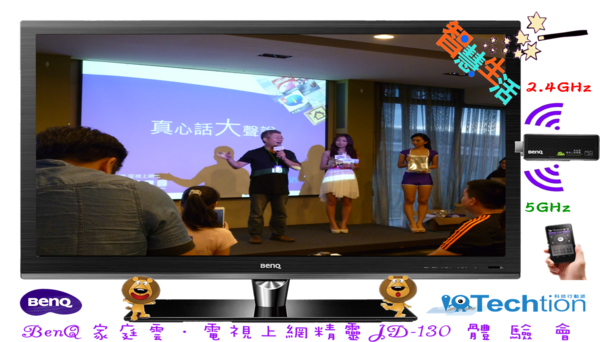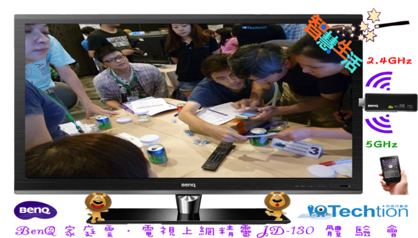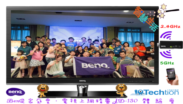 南部阿嬷家的電視還是傳統20吋CRT電視,老人家總是很省吃檢用,沒壞還可以用的東西,她總是捨不得丟,所以在這場體驗會之前,電腦王阿達大哥開頭問到大家有沒有人家中還在用傳統CRT電視呢?我不好意思舉手,因為今天的基本要求是要有一台有HDMI介面的液晶電視,而傳統CRT電視是沒有HDMI介面的,實在是感觸特別深阿,真的好希望能幫阿嬷換一台電視並裝上BenQ上網精靈JD-130,讓阿嬷除了看網路電視消遣外,內建大圖示的互動遊戲也能鍛鍊腦力和體力,更能透過家庭生活板App相本功能,看到兒孫們生活的照片分享,若是阿嬷手癢一時興起,還可在家庭生活板留言板和爸媽及兄弟姊妹們一起分享生活中的點點滴滴,尤其阿嬷只會注音,IQQI輸入法和語音輸入法簡直就是針對阿嬷量身打造的嘛~很開心能入選T客邦和BenQ舉辦的家庭雲.電視上網精靈歡樂體驗會,從貼心的接駁車、很棒的下午茶到禮物不用錢的大放送外,最重要是今天體驗會BenQ又讓小妹見識到除不閃屏螢幕、黑湛屏液晶電視外,另一項叫人驚豔的產品,精心擘劃的活動搭配家庭生活板App將我們這組的從完全不認識的陌生人凝聚成無所不談的朋友,這也是見證奇蹟的時刻!也算是不虛此行了,感謝大家賞文,最後附上體驗會成功大合照,期待下次再相見~