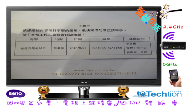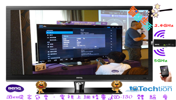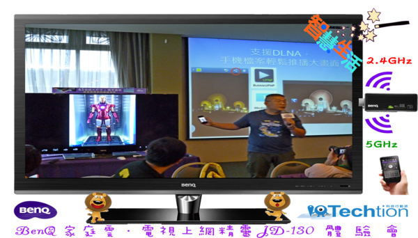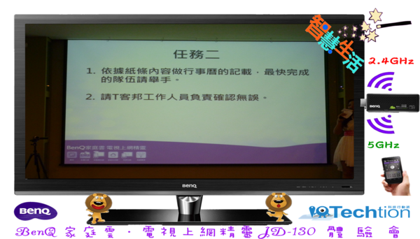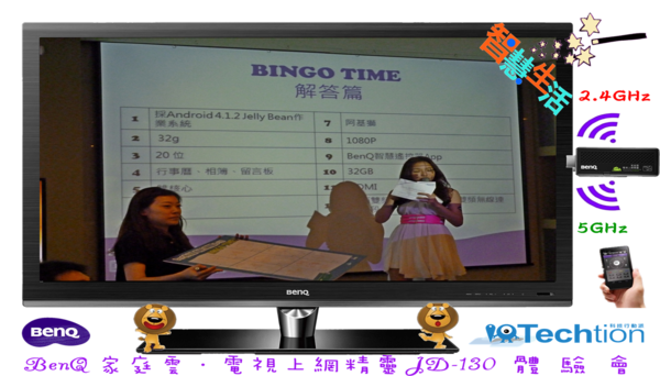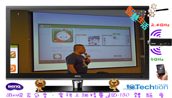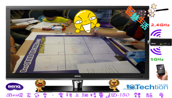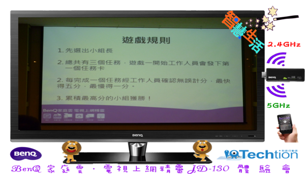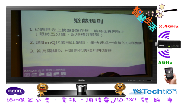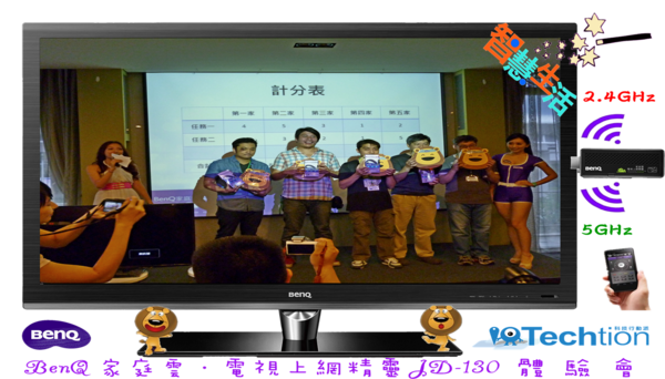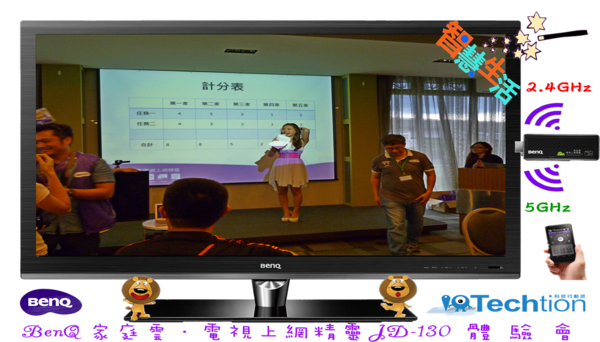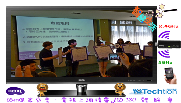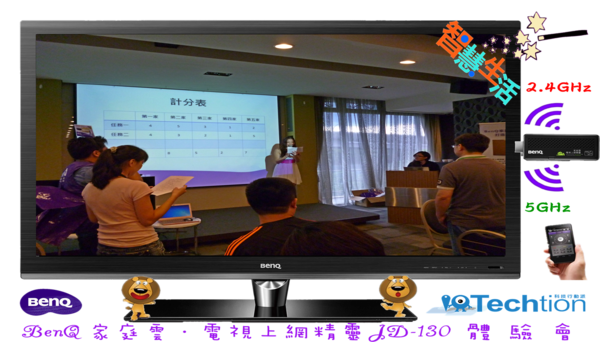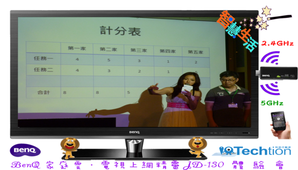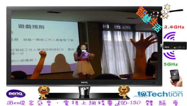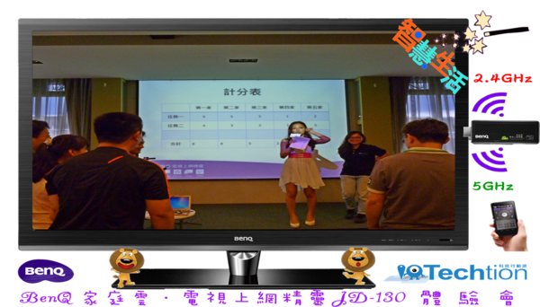 ▼ 而PK的對手是誰呢?就是BenQ小天使。可是比賽還沒開始就結束了,第一組組長透過JD-130不到10秒的速度就完成設定並播放影片,而BenQ小天使還拿著影音線材不知所措,JD-130連網真的輕鬆又便利!