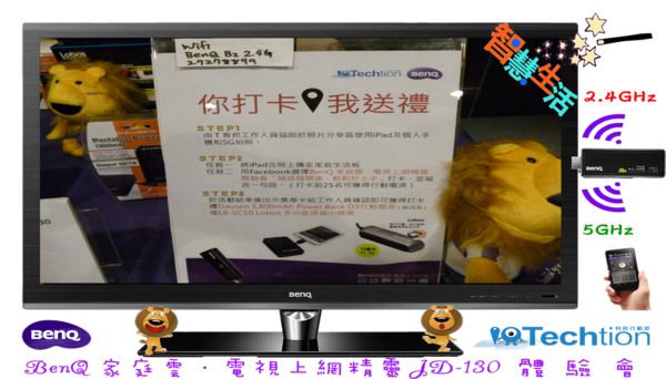 ▼ 今日亦有打卡好禮大放送,跟漂亮的BenQ小天使拍照後,上傳FB並且打上" BenQ家庭雲,電視上網精靈體驗會「隨插隨開演輕鬆好上手」"就可以拿到囉~