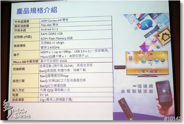 ▲電視上網精靈產品規格可說非常高階,搭載了ARM A9雙核處理器,使用Android4.1.2系統,內建RAM 1GB,ROM也有4GB,而且還可以擴充最大32GB的Misco SD卡