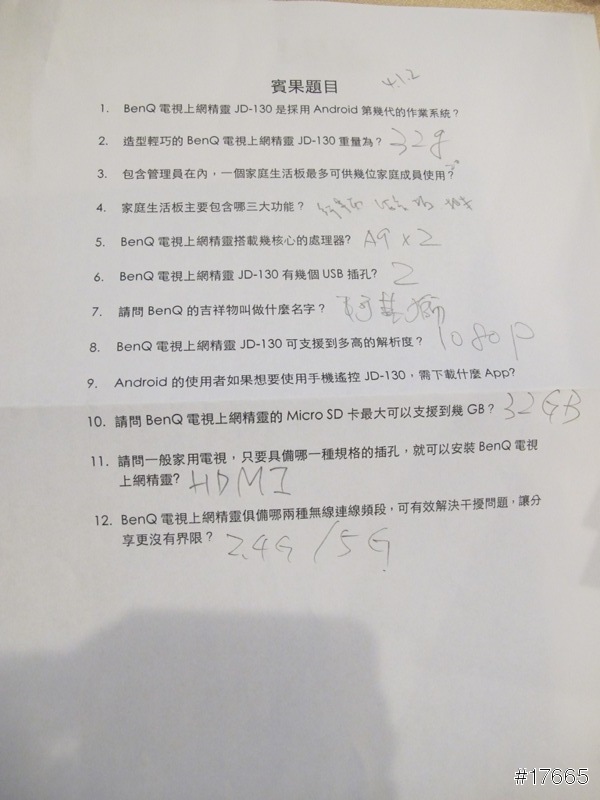 ▼分組賓果遊戲:將題目12題選9題,填入九宮格中,最快連線的一組優勝,全組都有獎品喔!