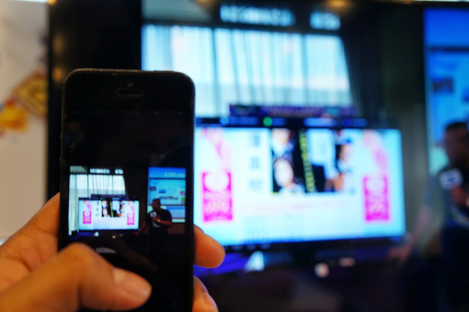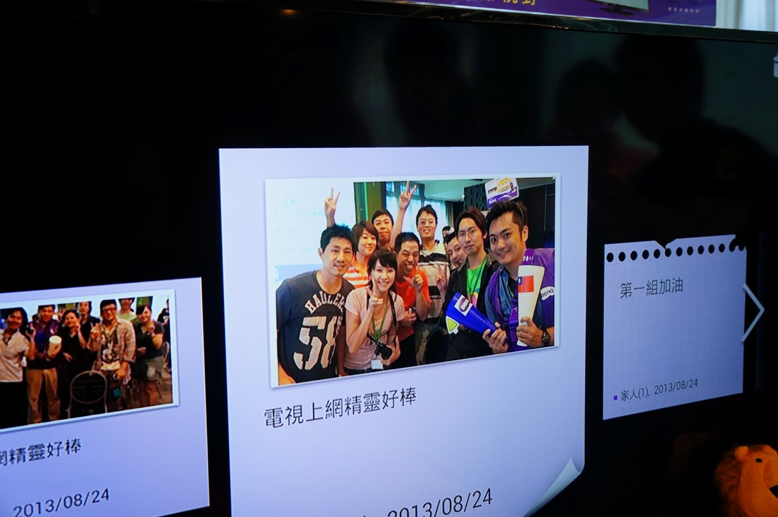 在現場拍阿達講解的照片,馬上就能投射到體驗的電視上。