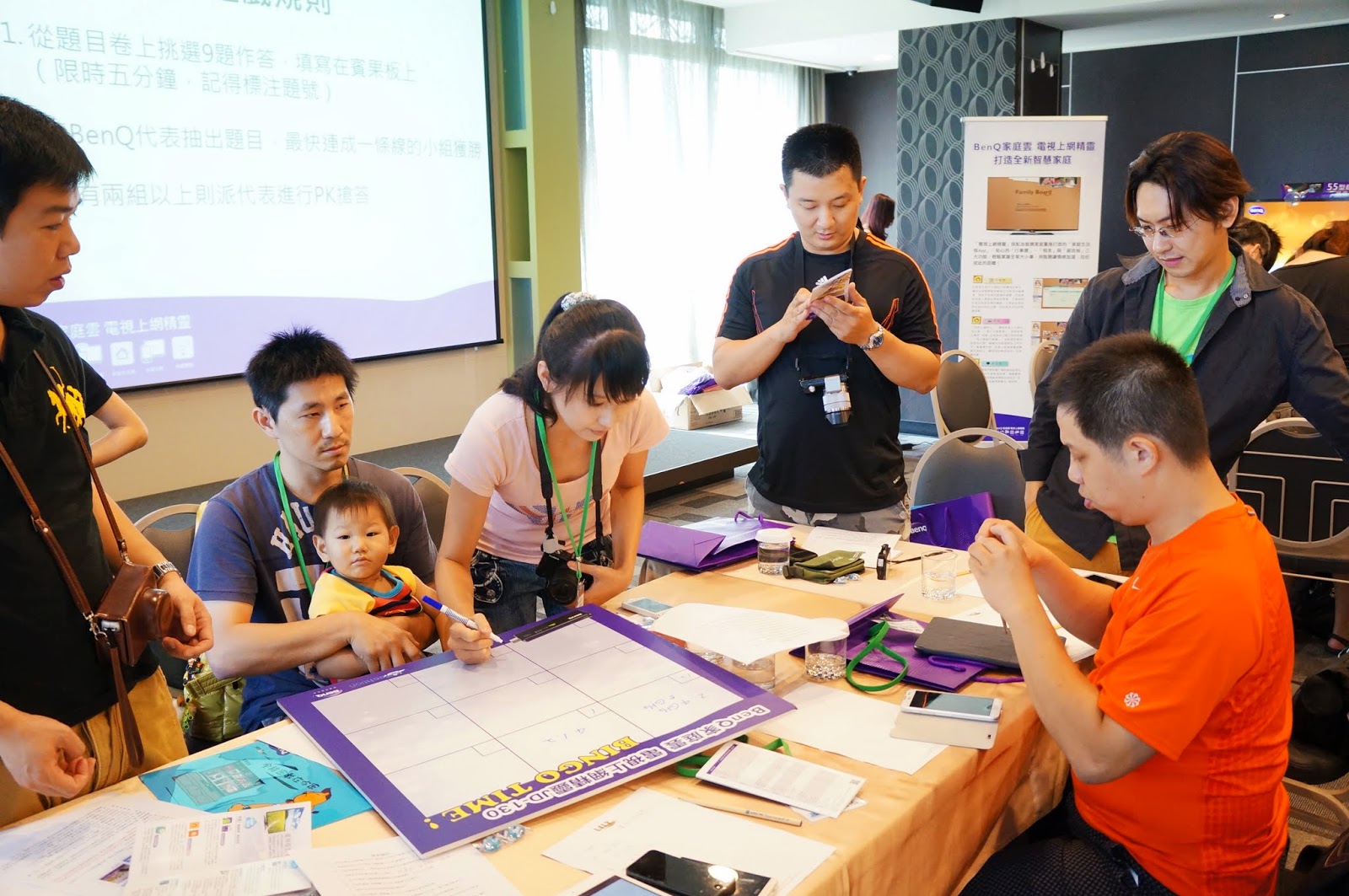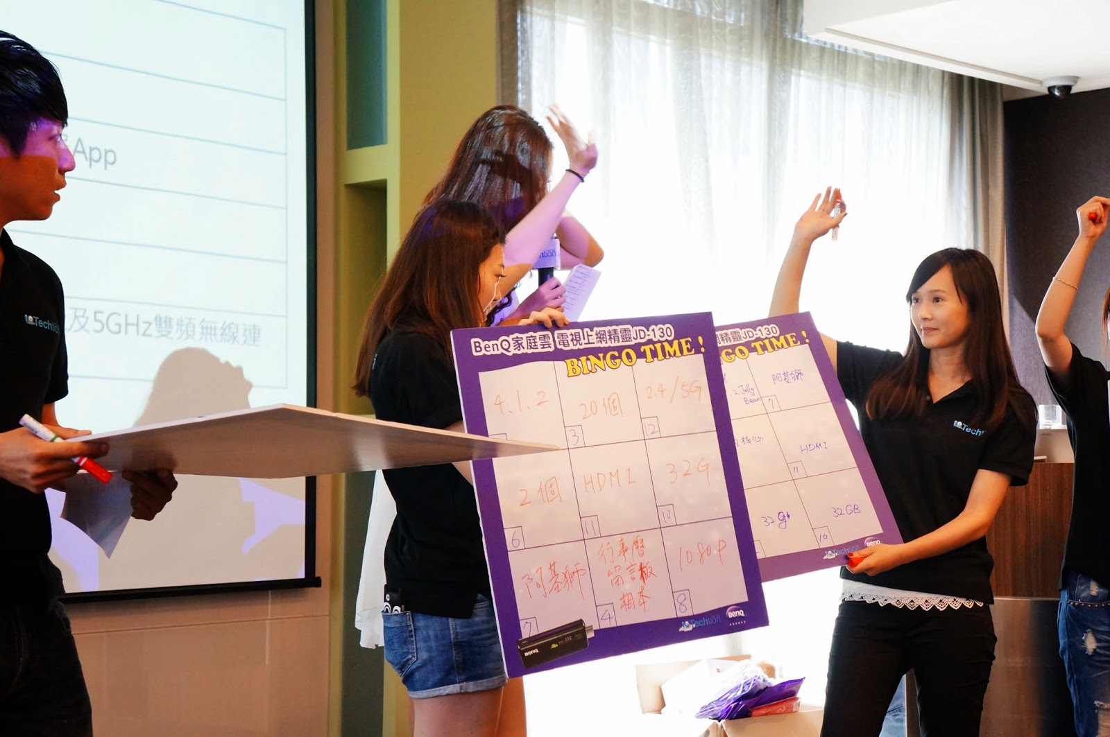 小組組員分工合作把答案寫在九宮格上,問題大多都是BenQ 電視上網精靈 JD-130的相關問題,透過遊戲的方式讓來體驗的人員無意之間就把產品規格被的滾瓜爛熟了。