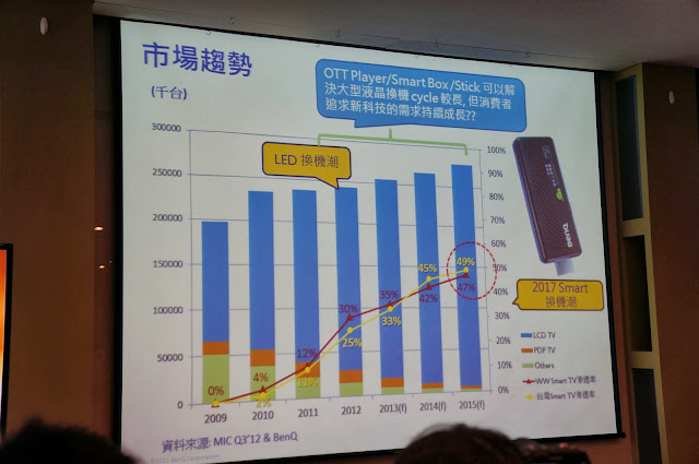 Roger提到2012年是傳統電視汰換成LED電視的換機潮,SMART TV也是在這個時期崛起。但是要到下一波SMART TV換機潮大概要等到2017年。在這個過度時期就是智慧型播放裝置投入的時機。