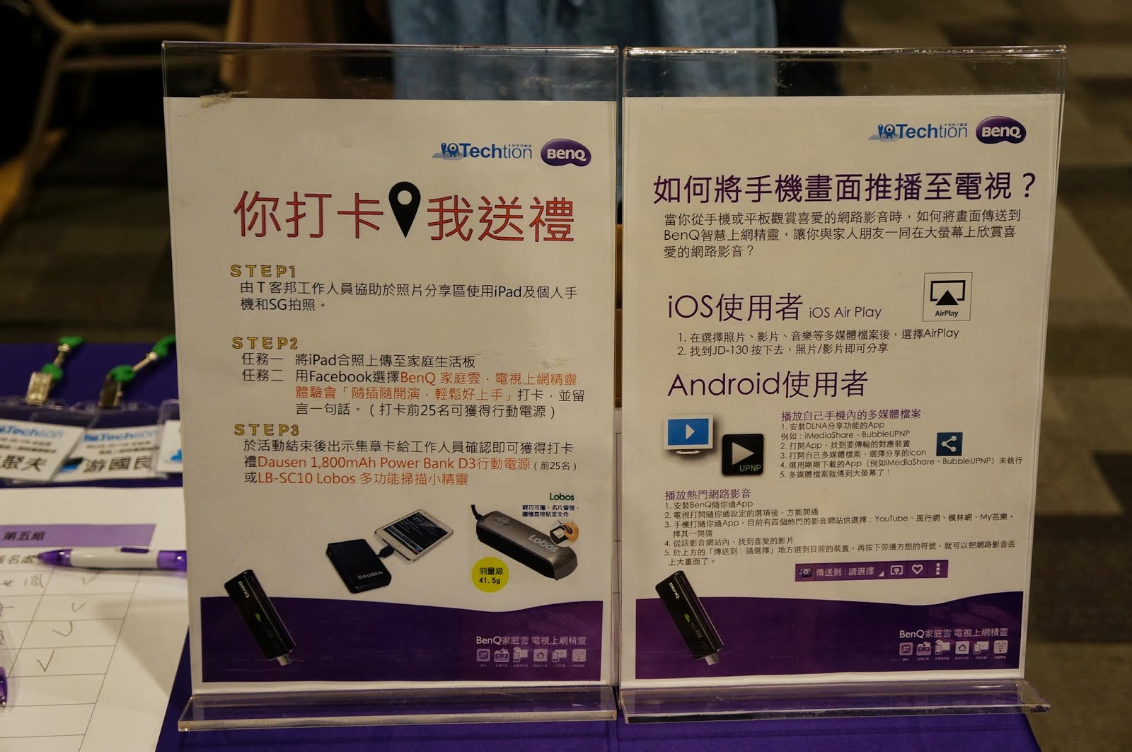 體驗會開始前有兩個關卡的打卡禮,一個是在Facebook打上 BenQ家庭雲,電視上網精靈體驗會「隨插就開演,輕鬆好上手」。