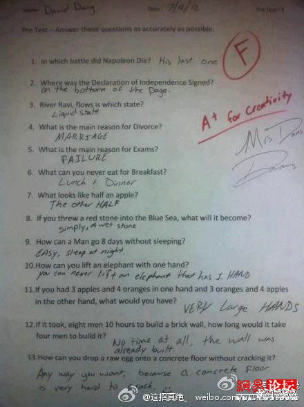 但考試時沒辦法找估狗大神怎麼辦?!沒關係,這位同學將為大家示範國學常識零但創意滿點的答題法!