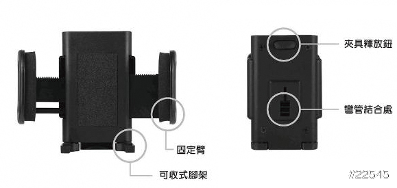 3. 支撐架:peripower的支撐架有很多種不同的長短與款式,以上圖為例是無法彎曲的,但我們也有提供如蛇管可任意彎曲調整各種角度的車架。