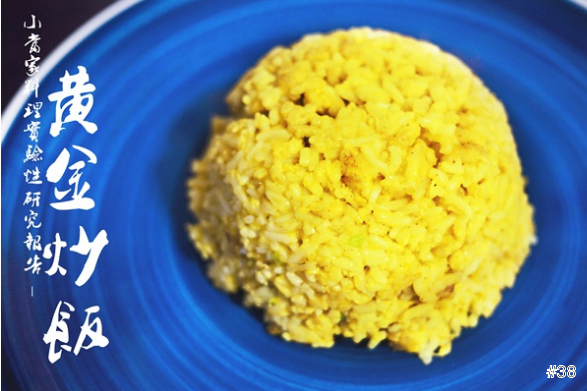 大陸名為「雨前羽街」的網友因為熱愛小當家,決定依照卡通的描述來研究其中每一道菜菜的作法,以下是她開發黃金炒飯的經過,先來看成品對照原卡通作品