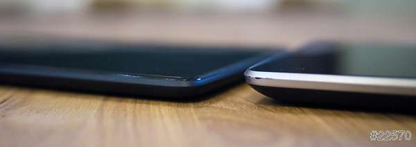 不只是寬度,新一代的 Nexus 7 的的厚度硬是縮減了0.2公分,並拿掉了一代原始邊框的設計,走全黑路線,讓平板電腦呈現出一種精鍊黑色的質感。