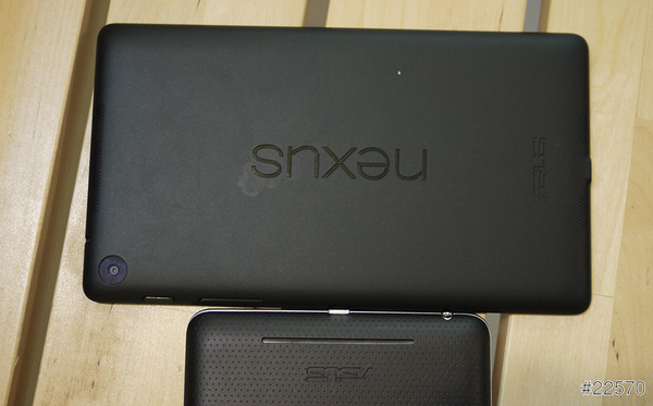一代的 Nexus 7 將喇叭放置在底端,而二代則改善成上下兩端皆有喇叭的設計,這麼一來當使用者橫著拿平板看影音內容的時候,聲音的包覆性會更完善。再加上Fraunhofer Cingo技術的導入,讓使用者即使在一般環境中,能夠感受到更加自然的聲音效果。