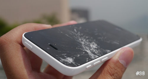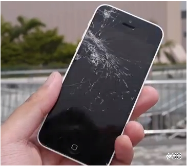 再來是iPhone 5c,一般來講,用塑膠外殼製作,對於抗震應該會有比較好的彈性吧?的確也是,不過很可惜的是,在最後的一向測試中,它的螢幕爆了!