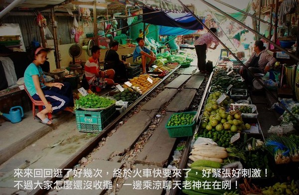 [分享] 神奇的曼谷鐵道市集 生活 · 科科 · 發表於 2013-10-08 13:56 · · 檢舉 列印版 twitter plurk 7.7千閱讀次數 原文在此 曼谷的市集各式各樣,真的是什麼都有、什麼都賣、什麼都不奇怪;不過有個很神奇的地方讓我印象非常深刻,那就是離曼谷市約70公里、位於美功(MaeKlong)的「鐵道市集」(railway market)。 還有影片欣賞: 2 個人說讚 收藏 快速回應 引言回應 登入來回應 header home