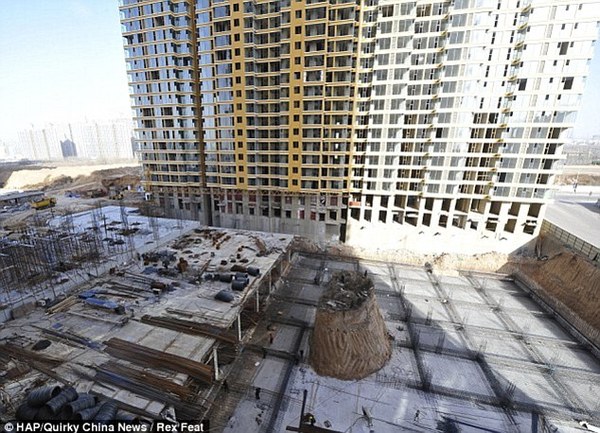 這種建築奇觀也不是第一次發生了,還記得前陣子有戶人家不想遷墓,建商就把附近地基全部挖空開始蓋房子,只留1戶陰宅在建物中間的事嗎?
