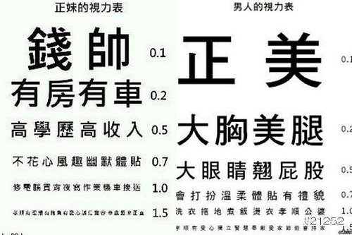 [分享] 正妹眼中看出去的世界是這樣!極中肯正妹視力檢查表