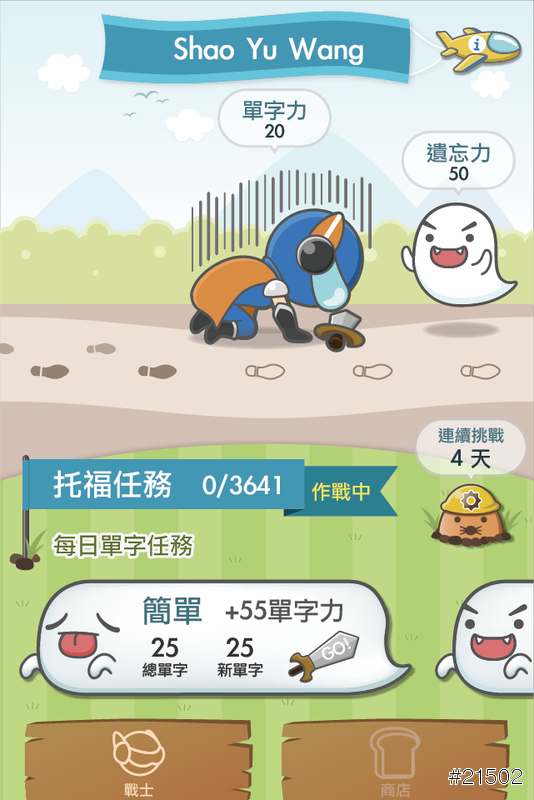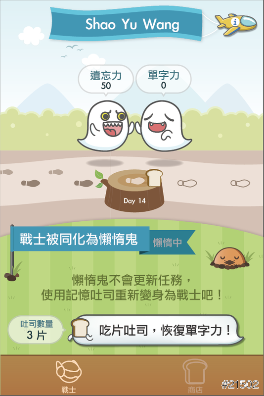 特有的懶惰鬼扣單字力系統, 讓使用者的單字力戰士如果沒有每天背單字的話, 就會變懶惰鬼!!