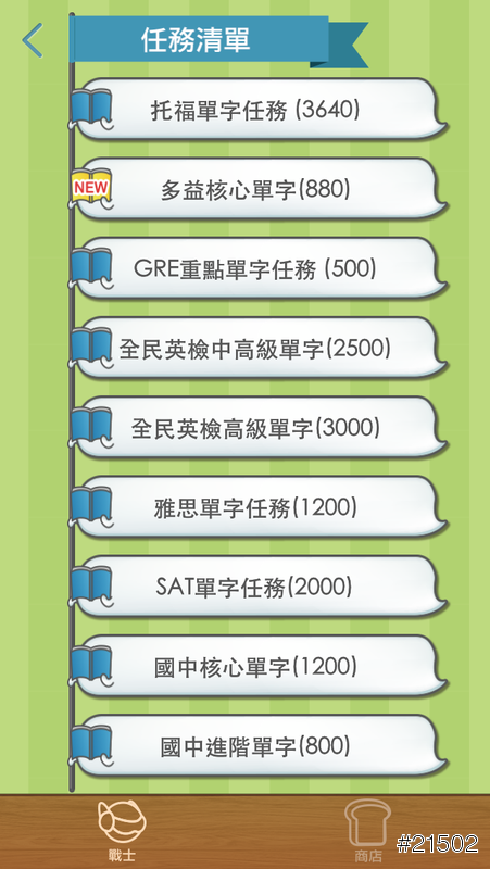 單字庫目前的範圍有: 托福, 多益, GRE, 全民英檢, 雅思, SAT, 國中單字...