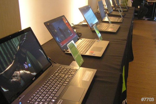 ▲現場各家的高效能筆電、平板,使用 Batman: Arkham Origins 、Tom Clancy's Splinter Cell Blacklist 等遊戲做產品體驗。