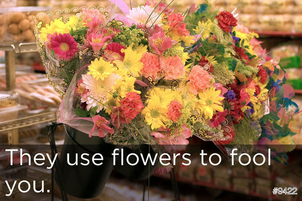 利用顏色鮮豔的花草降低被眾多商品包圍的不舒適感,讓你待在賣場裡久一點。