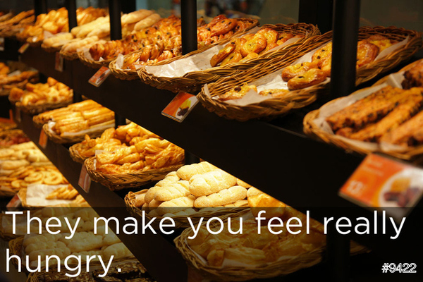 把麵包部擺在入口處,人們就會因為麵包的香氣進而食慾大開,不知不覺買了更多食物回家(我每次都被這招打敗,剛出爐的麵包真的是……)。