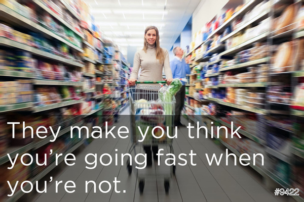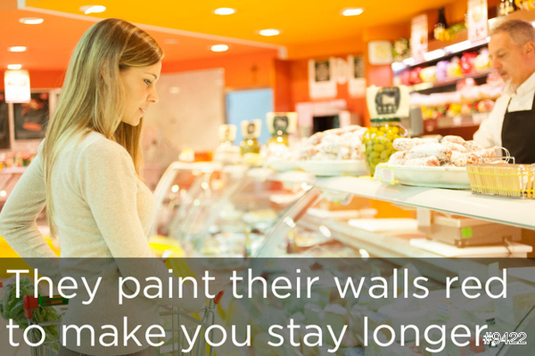 賣場使用較小的地磚讓你產生錯覺,以為自己走太快了,讓你放緩腳步以便更容易看到商品。