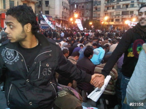 6. 2011年埃及開羅暴動時,基督徒保護回教徒。