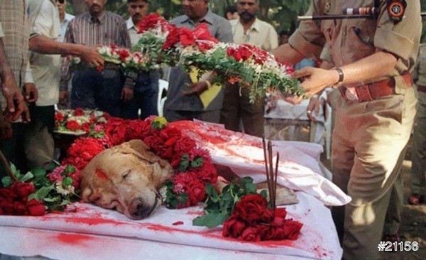 10. 狗狗Zanjeer在孟買總共找出超過3,329公斤的爆裂物、600個引爆劑、249顆手榴彈、6,406圈的彈藥,救了千萬個人類。牠在2000年辭世。