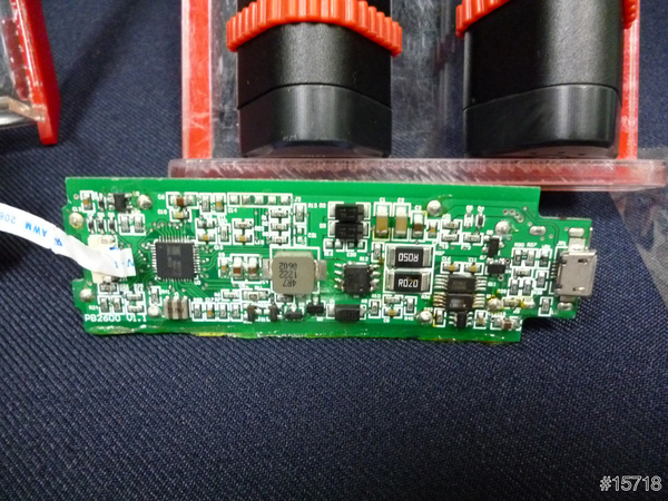 ▼高階機種行動電源內部PCB電路板, 具雙組USB埠及LED充電指示燈