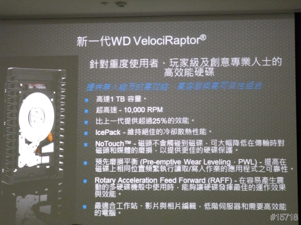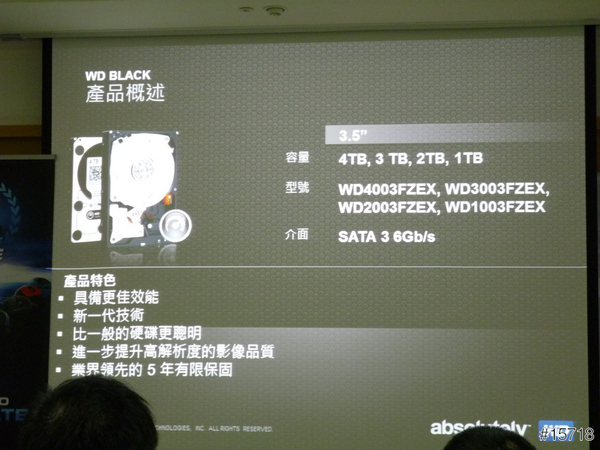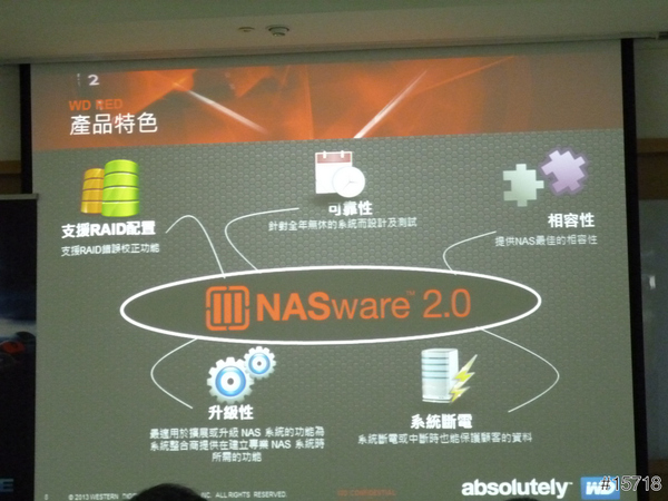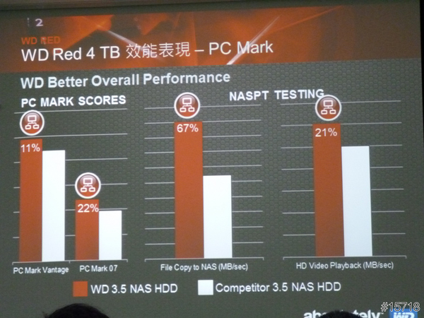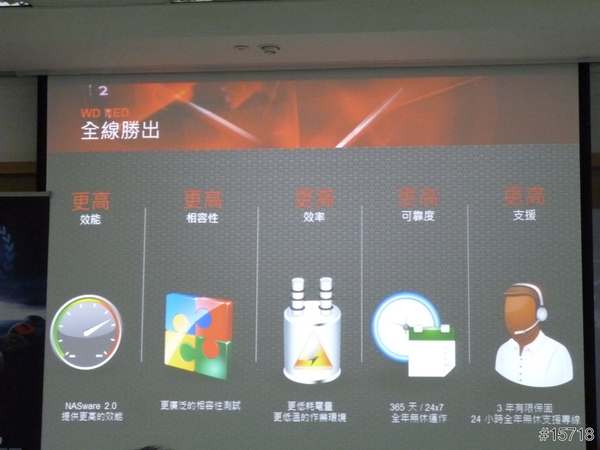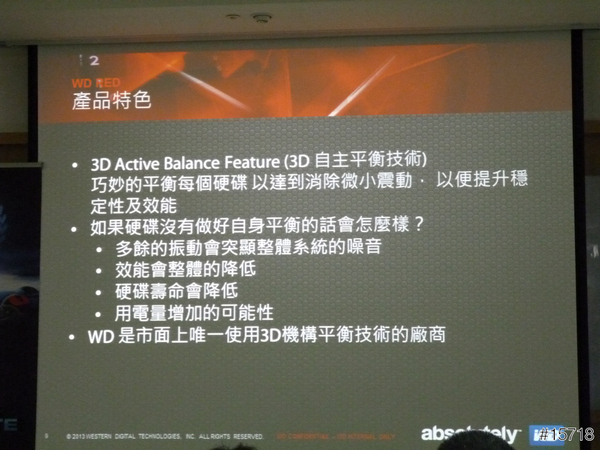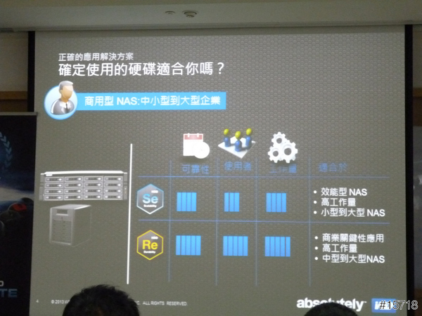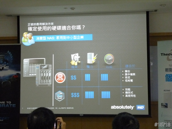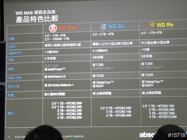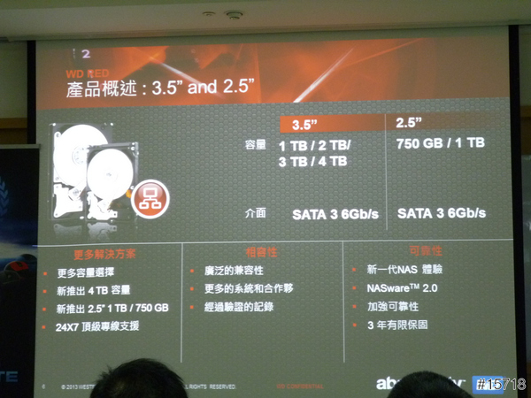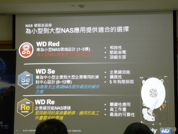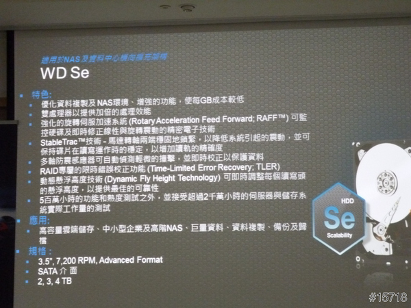 ▼Kevin致詞後,緊接著就是各家廠商新產品的介紹囉~第1家為WD,WD NAS硬碟依使用者需求,分成Red(1-5槽)、Se(6-12槽)及Re(企業專用)等三類。