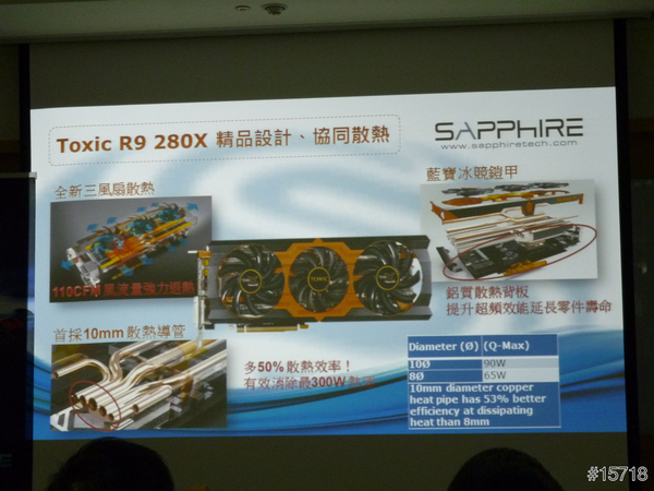 ▼藍寶的TOXIC R9 280X,從風扇、熱導管到鋁散熱背板,對於散熱有下很大的功夫,不但提升超頻效能, 更能延長零件壽命。