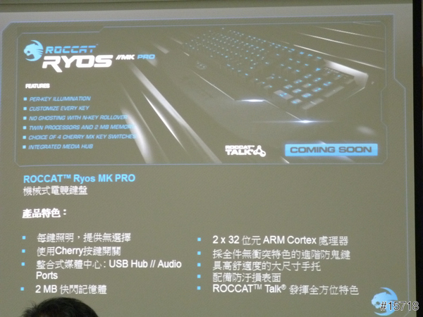 ▼ROCCAT Ryos MK PRO機械式電競鍵盤,特點是每鍵可自定照明及防鬼鍵設計。