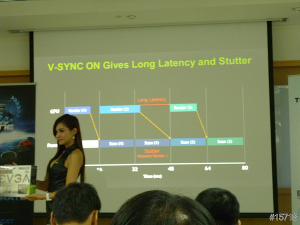 ▼當GPU開啟垂直同步(V-SYNC)時,常會有延遲與閃爍的現象。