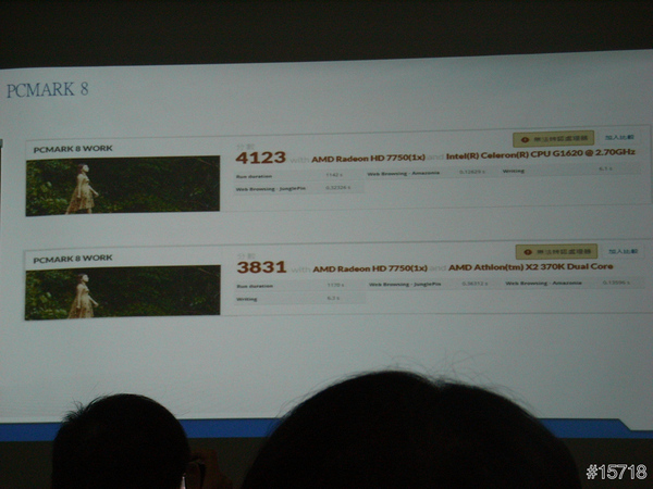 ▼PCMARK8 測試分數,Intel CELERON G1620:4123;AMD X2-370K::3831。