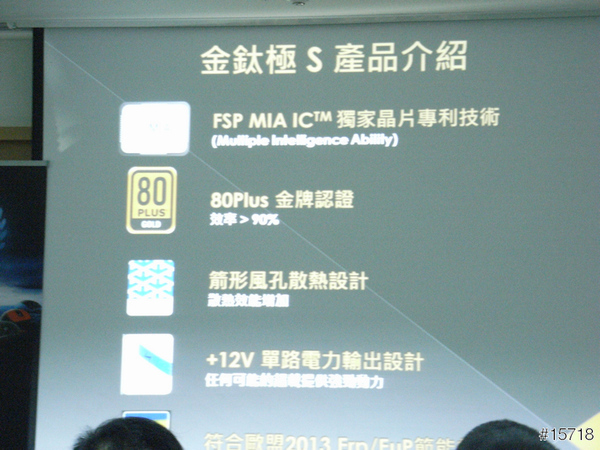 ▼金鈦極S產品介紹,較特別的特色是採用FSP MIA IC獨家控制晶片專利技術。
