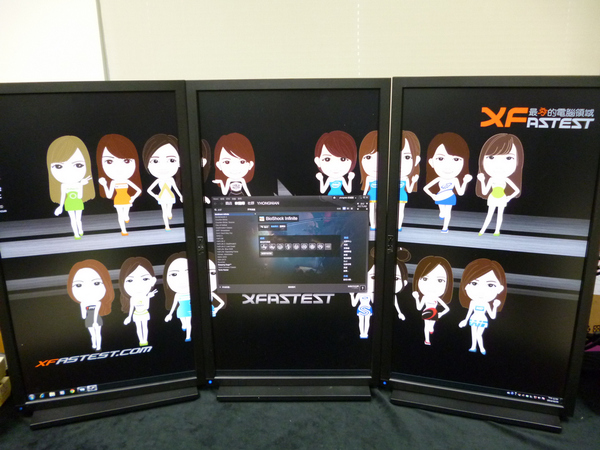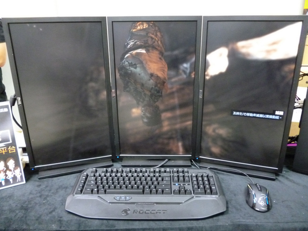 ▼最後一家不是別人,就是XF自家認證的主機展示,三螢幕組成大螢幕,玩起遊戲絕對沒有死角阿。