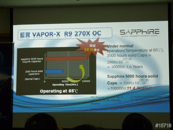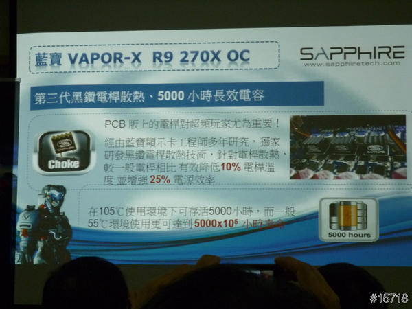 ▼藍寶VAPOR-X R9 270X OC,採用了黑鑽電桿散熱及5000小時長效電容,壽命可超過11年之久。
