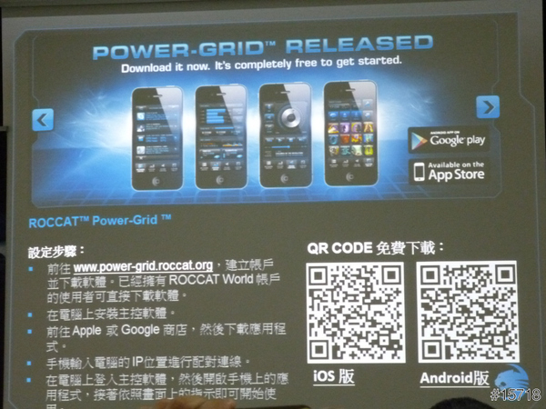 ▼ROCCAT Power- Grid PC REMOTE CONTROL App,讓智慧型手機變身為電腦遙控器。《ROCCAT Power Grid》為電腦玩家開拓全新的視野。智慧型手機現在終於能連結遊戲環境,而且提供相當自然且完全合理的體驗。因此玩家可摒棄鍵盤搭載整合式顯示器的非彈性解決方案;並藉此建立自己的指揮中心,享受 ROCCAT 創新技術所帶來的優勢」。