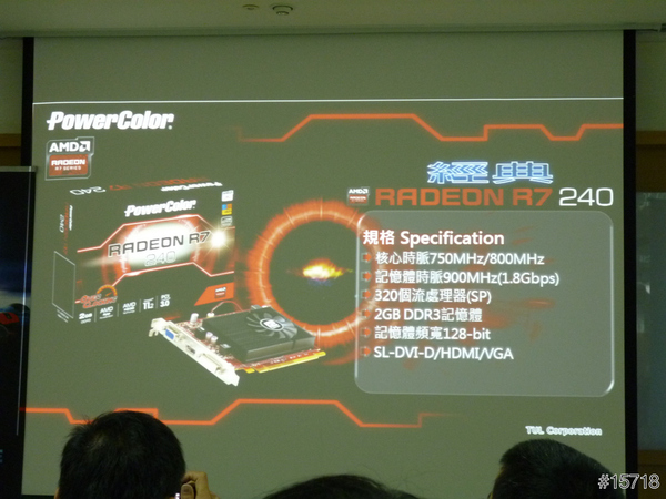 ▼經典R7 240規格,特點是2GB DDR3記憶體,記憶體時脈為900MHz