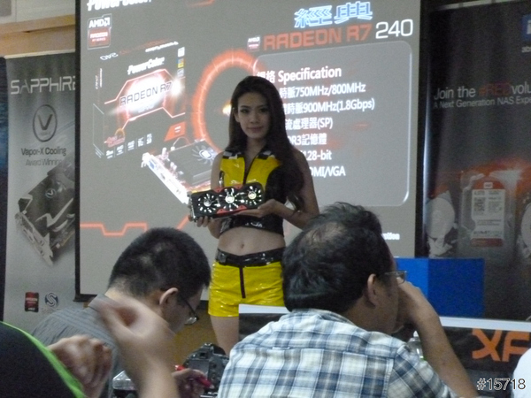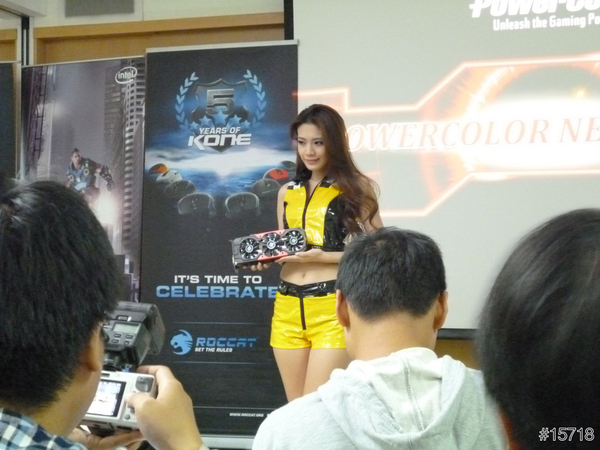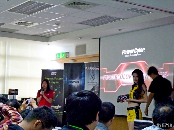 ▼Power Color介紹的女講師及拿著R系列顯示卡的正妹