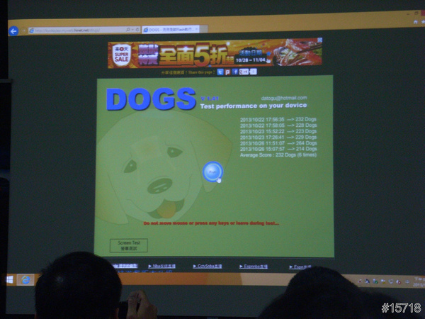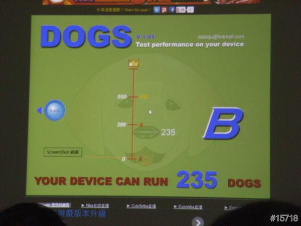 ▼現場開啟DOGS V1.41軟體,進行Flash效能測試。測試結果,Intel CELERON G1620:跑出235大頭狗;AMD X2-370K:只有202隻大頭狗。若以Intel第四代處理器跑的話,想必一定是到SS等級。